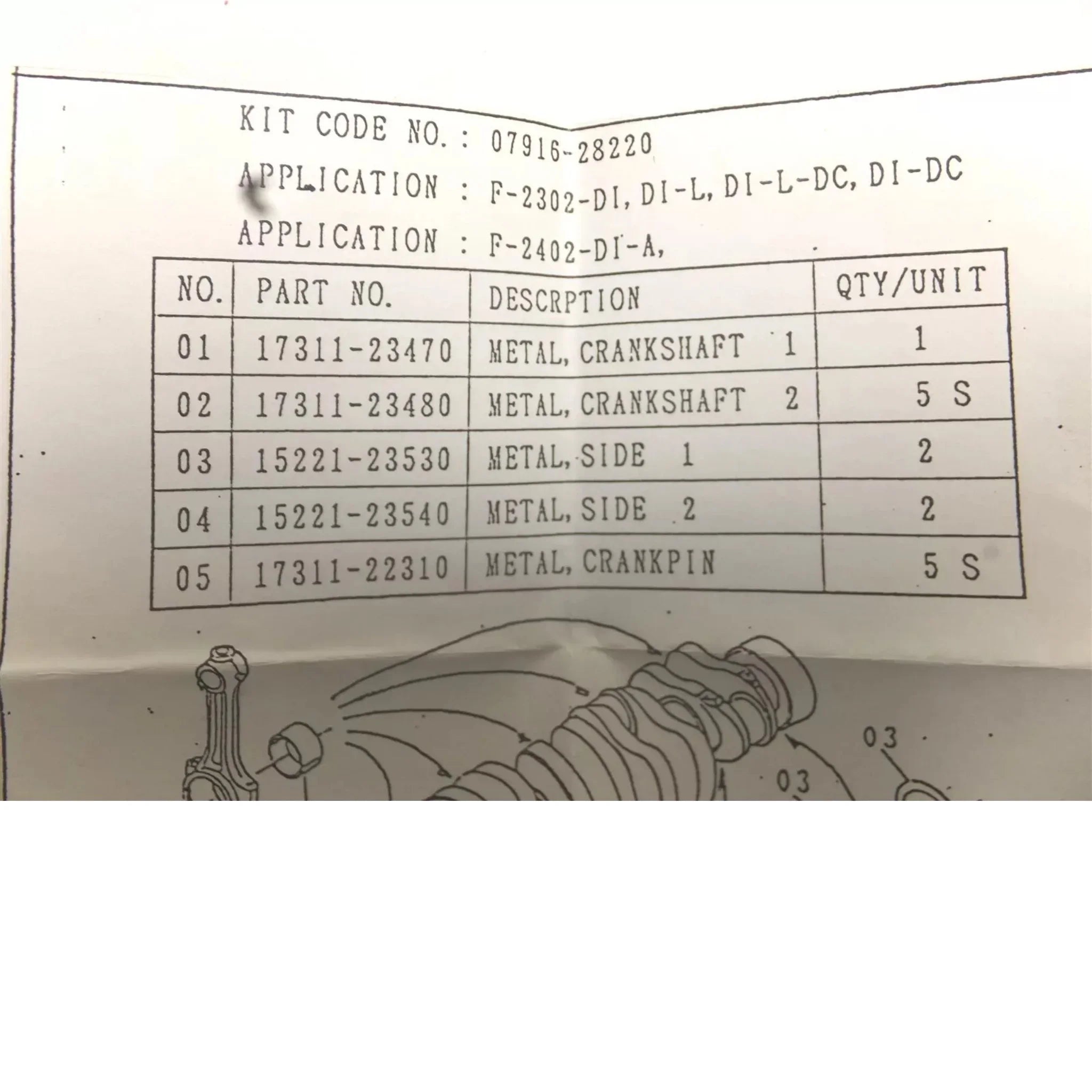 07916-28220 Kubota Metal Kit