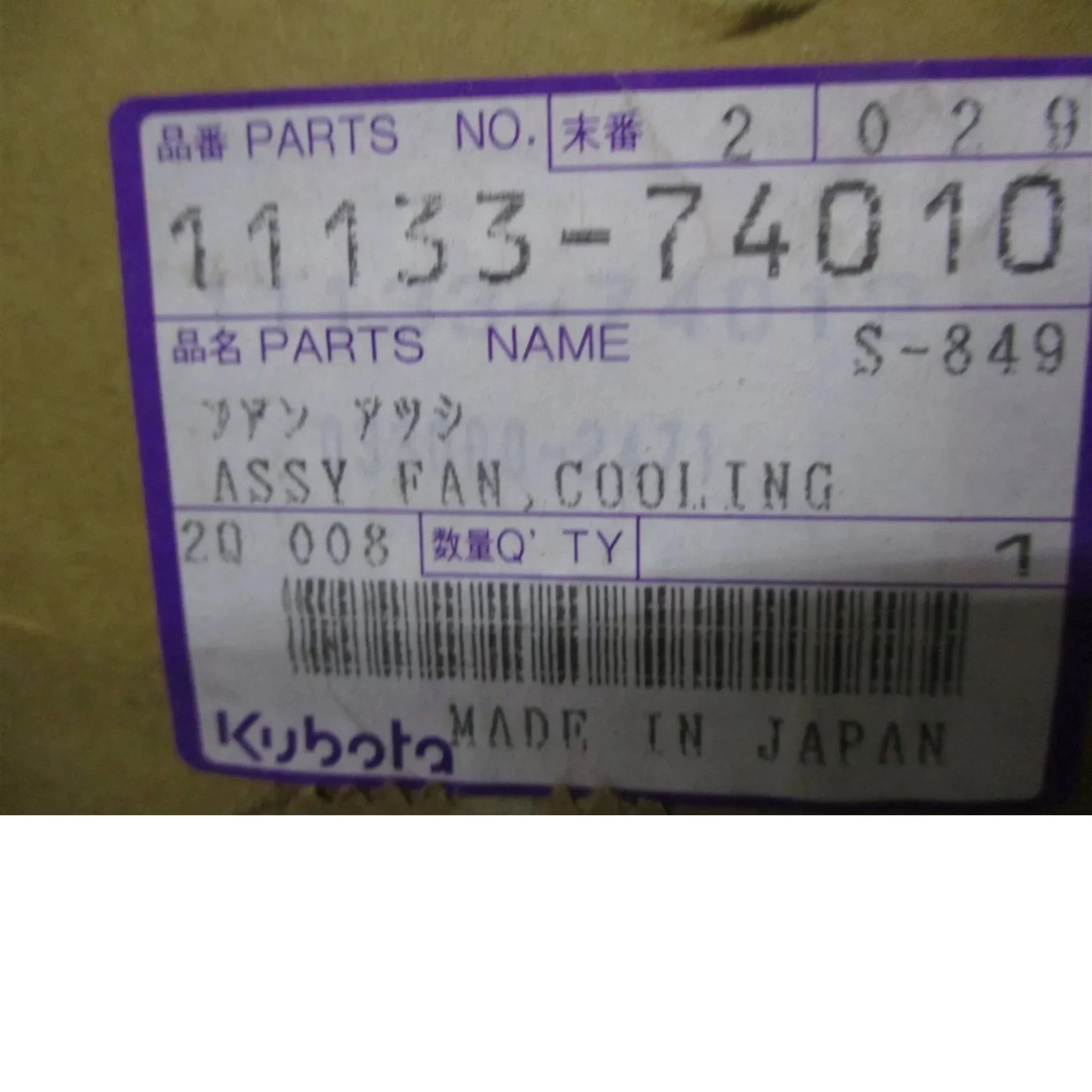 11133-74010 Kubota Cooling Fan Assembly