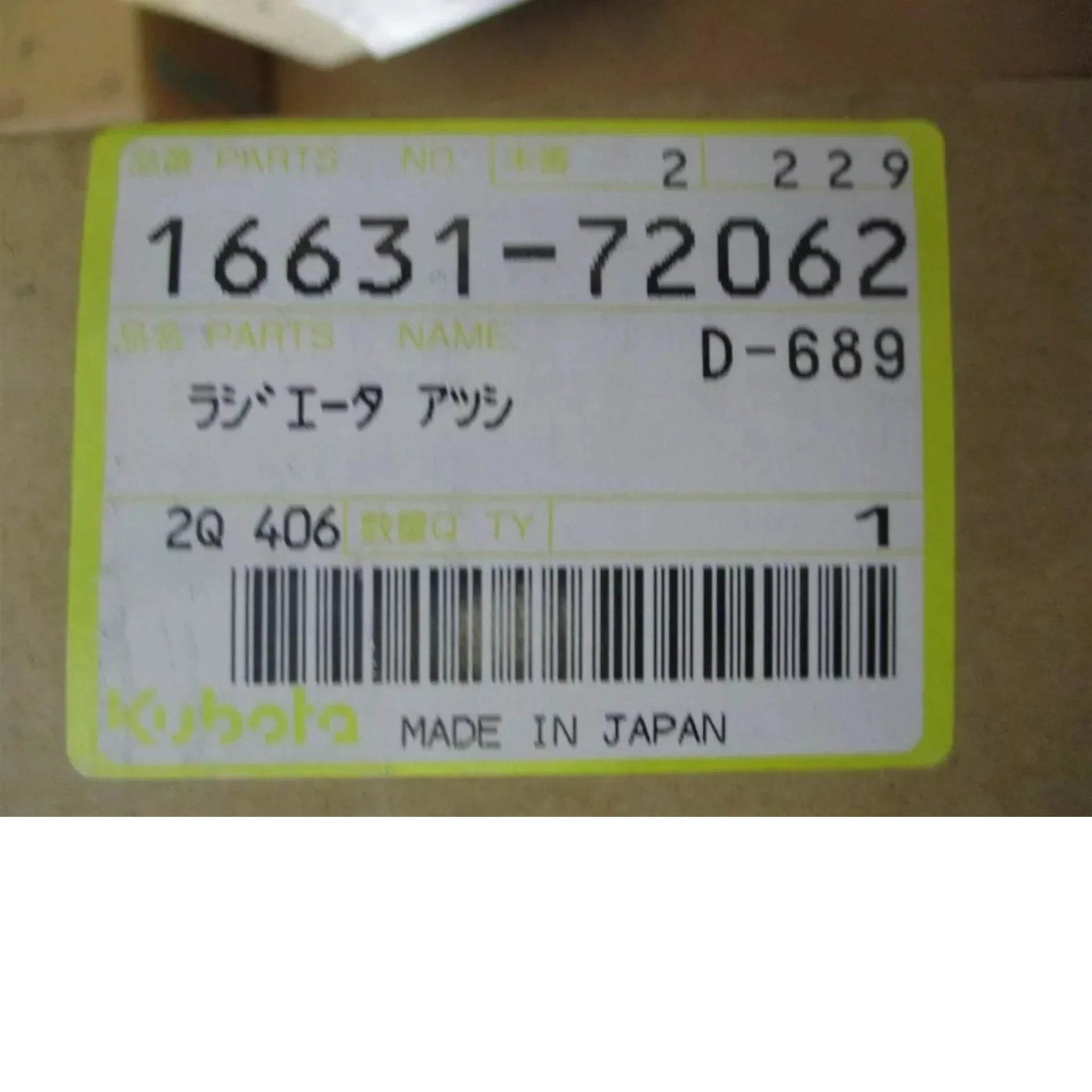 16631-72062 Kubota Radiator Assembly