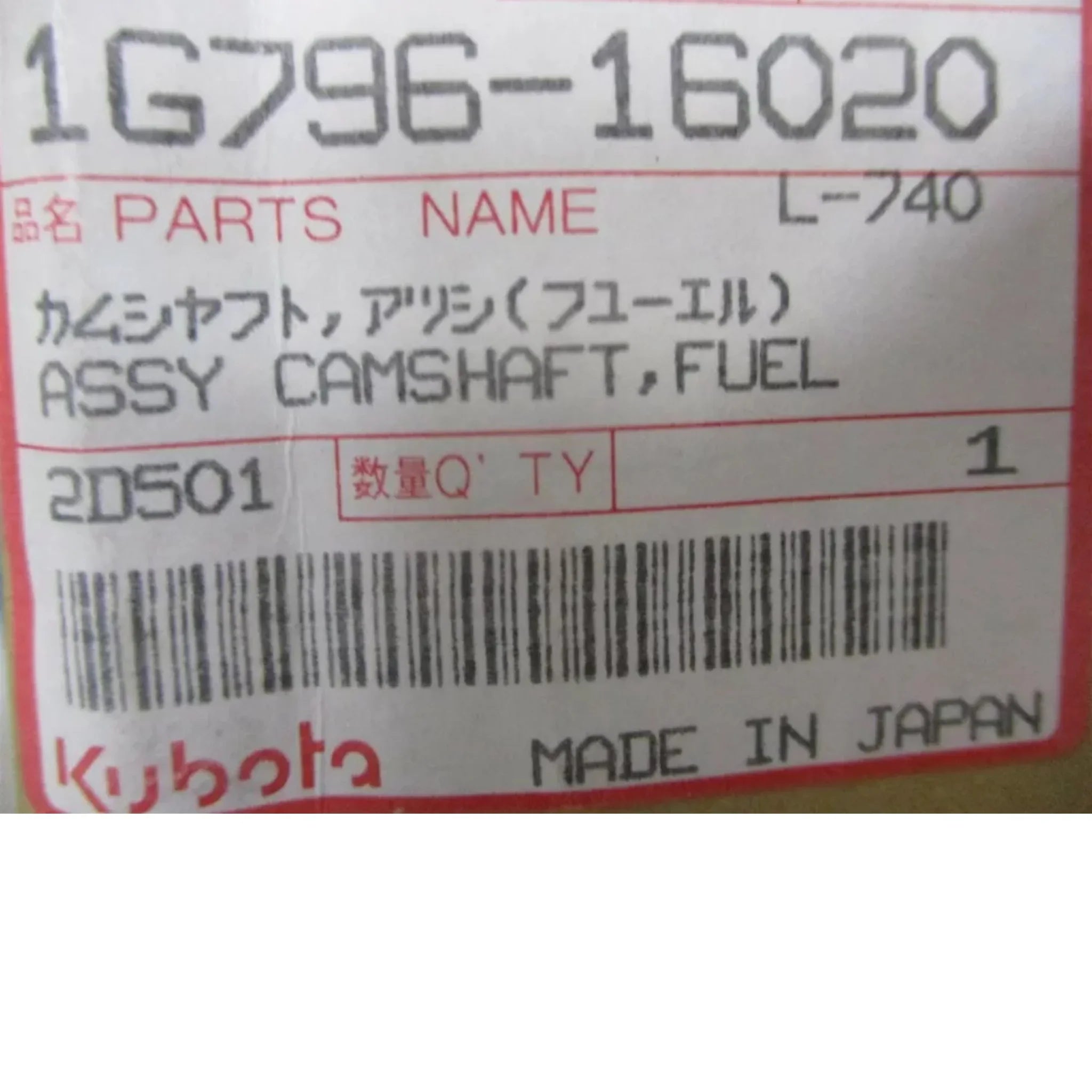 1G796-16020 Genuine Kubota Fuel Camshaft V2203