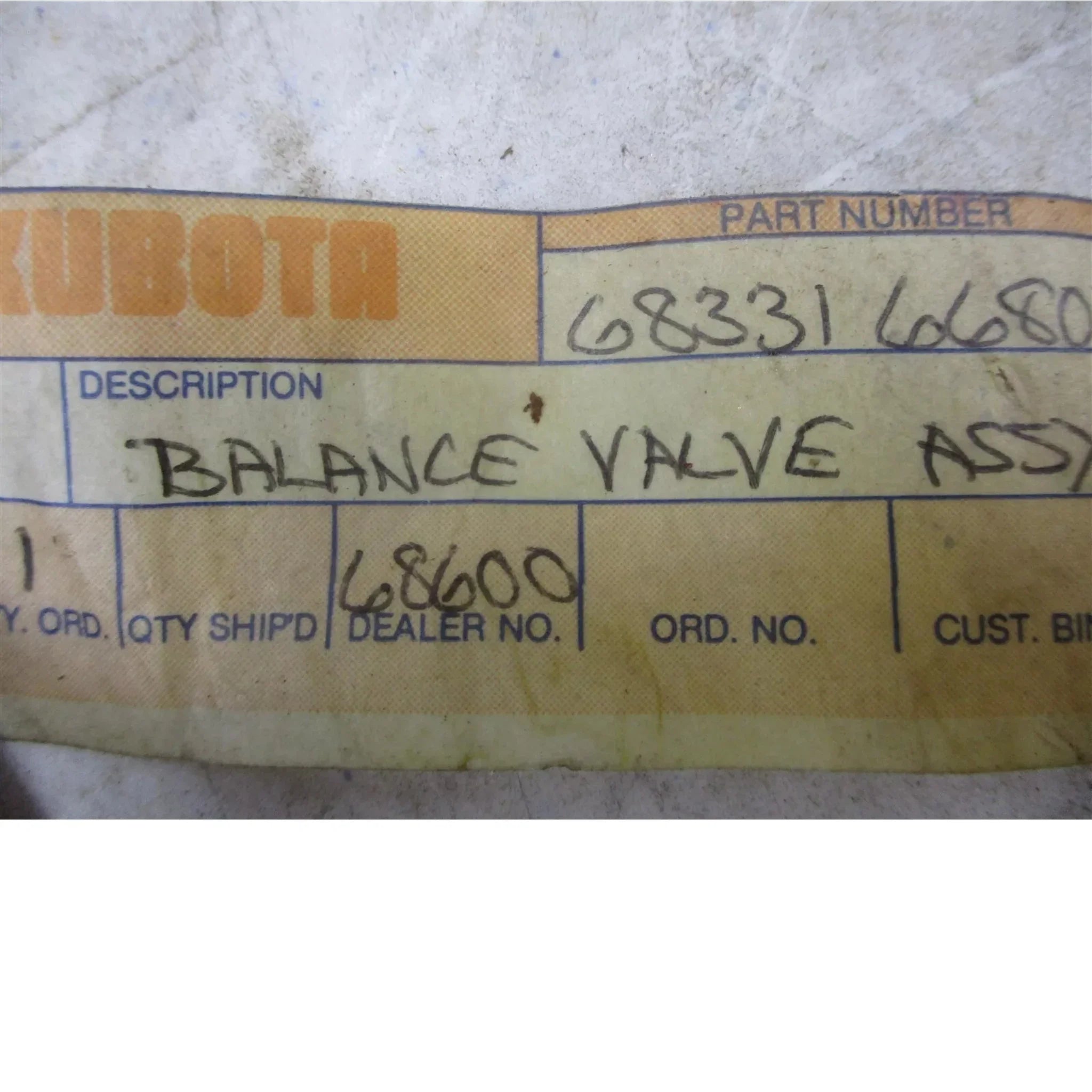 68331-66800 Kubota Hudraulic Balance Valve Assembly - Truck To Trailer