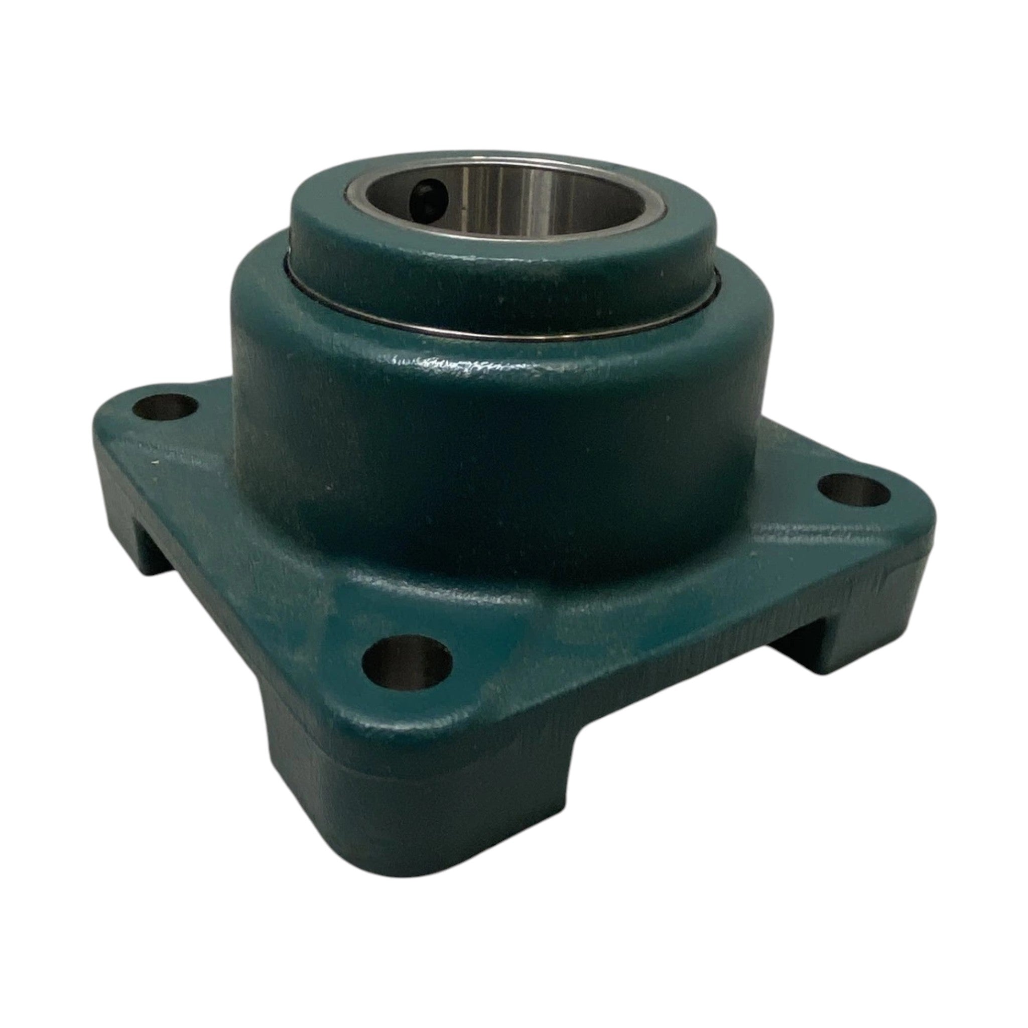 Description: Four-Bolt Square Roller Bearing Unit - Tapered Roller Brg., 3 in Bore , 4-Bolt Flange Mount, Set Screw, Non-Expansion Bearing (Fixed), Cast Iron Housing (No Core Charge)