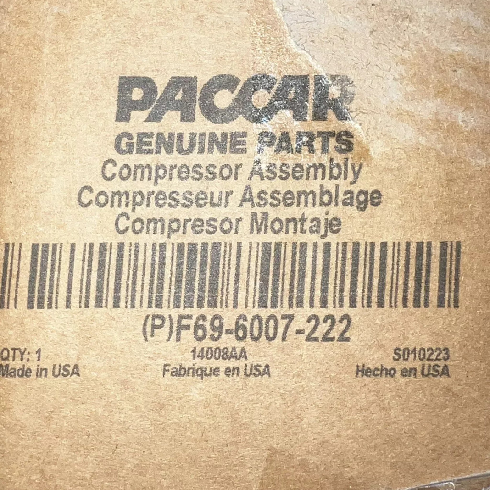F69-6007-222 Genuine Paccar Compressor Assembly