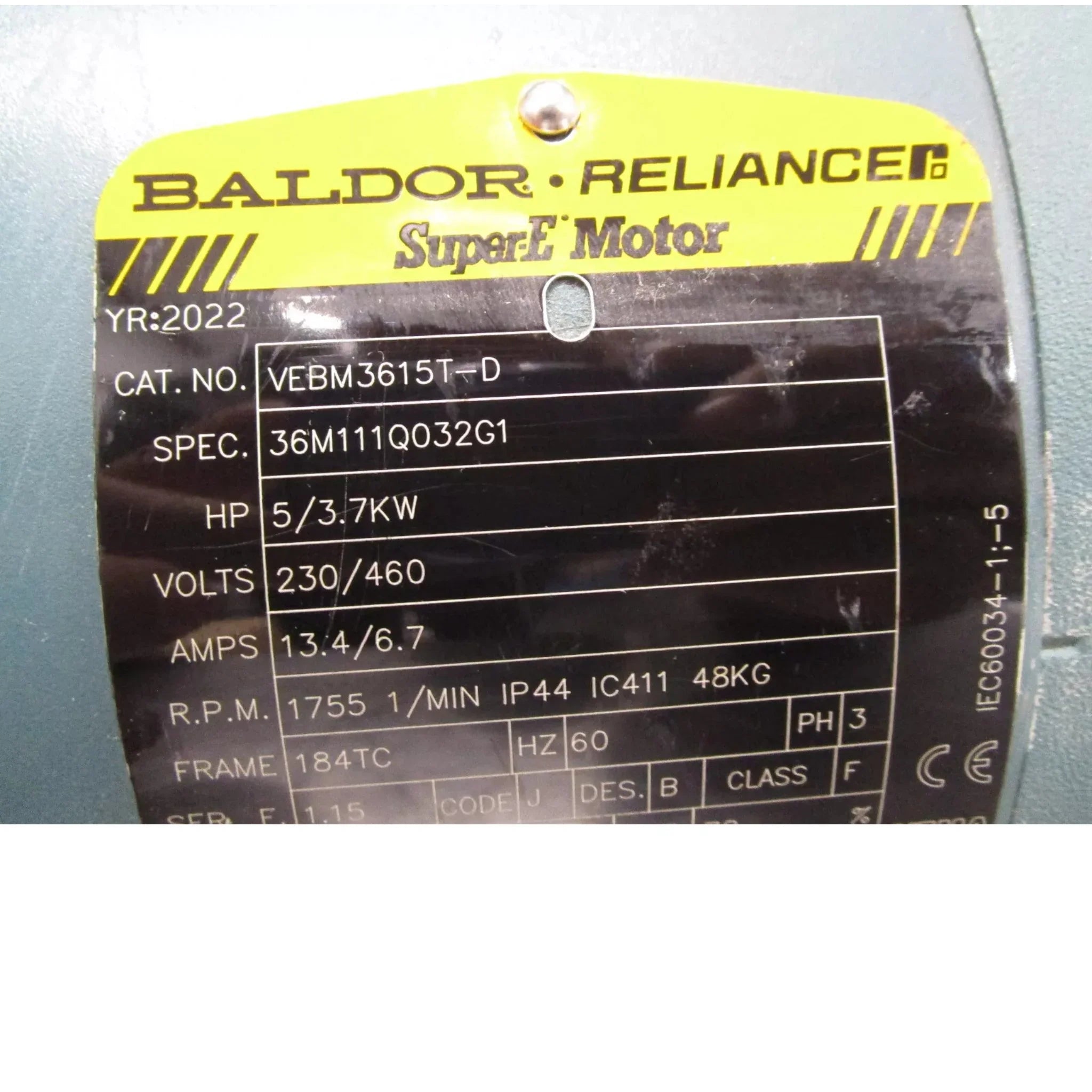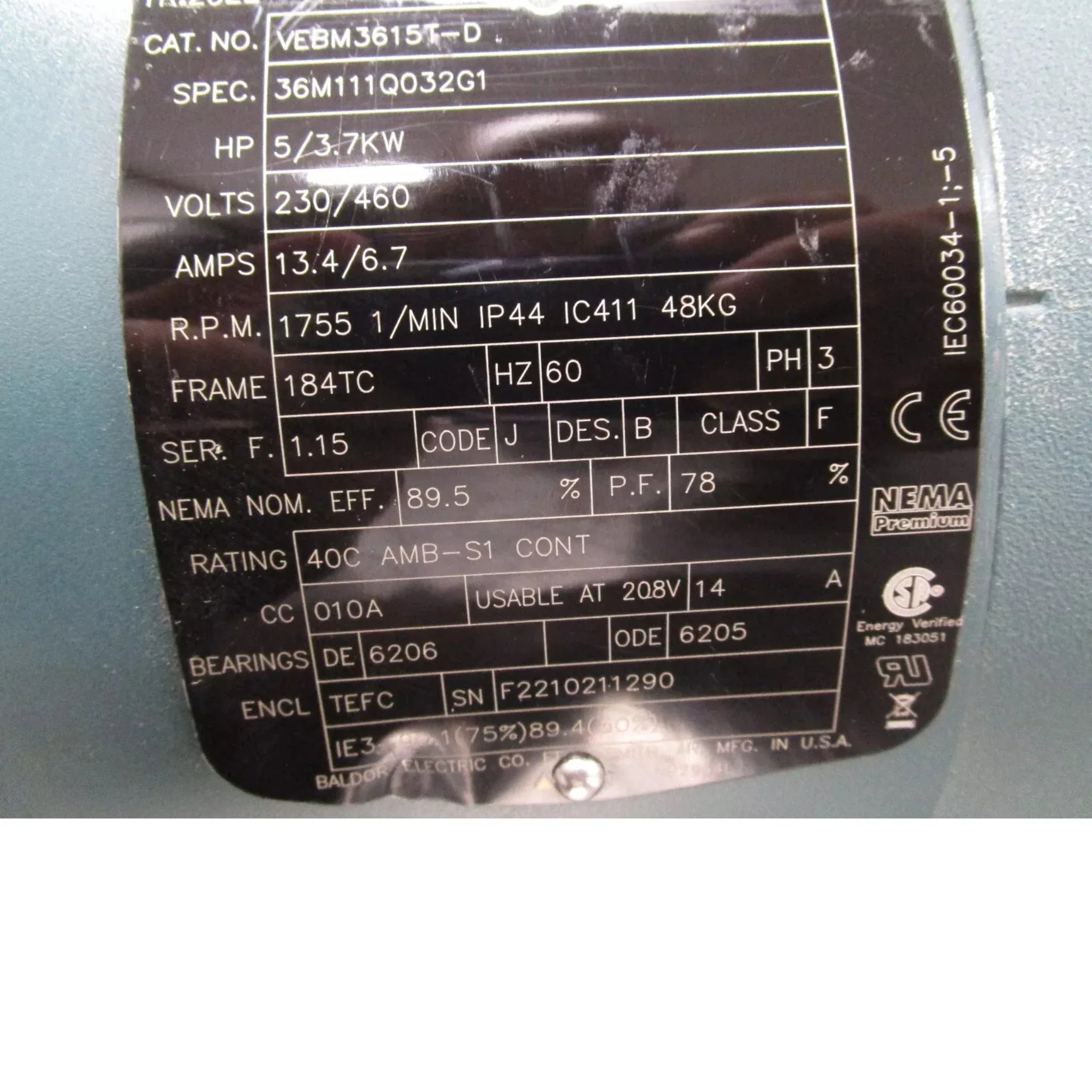 VEBM3615T-D Baldor Electric Motor 5 HP 1755 RPM